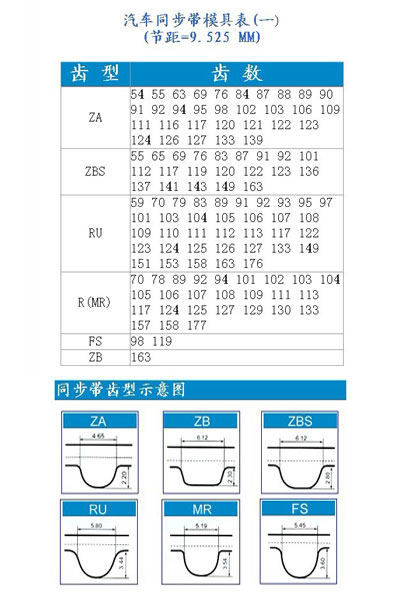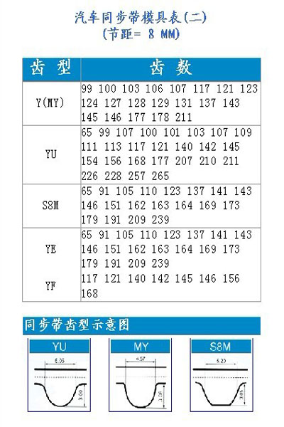 同步帶規(guī)格參數(shù)表