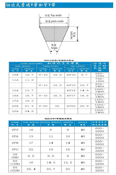 切邊式V帶可分為普通V帶和窄V帶其具體參數(shù)請(qǐng)點(diǎn)擊'參數(shù)表':